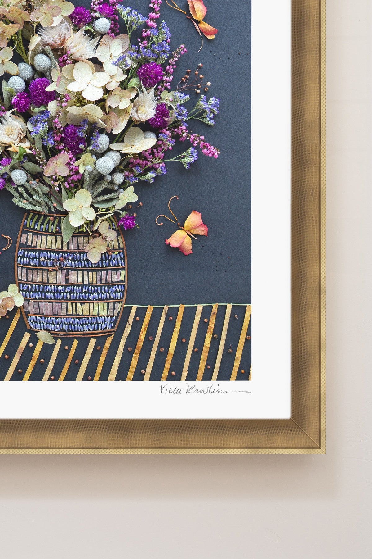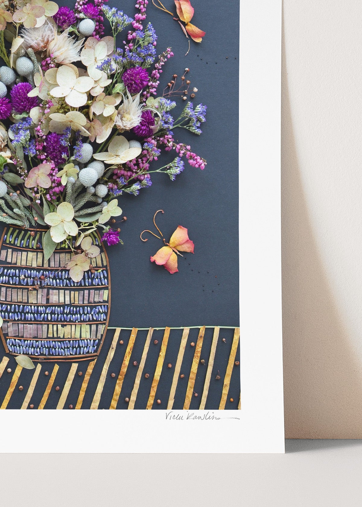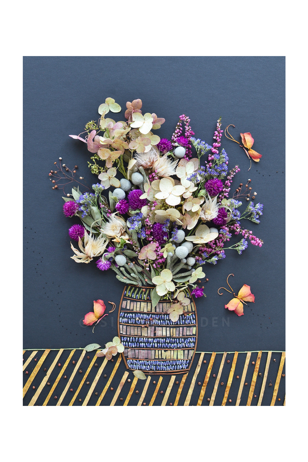 Co-owner Vicki creates stunning yet fleeting works of art made of 100% mother nature. Once her original is photographed, it’s recycled back into the earth. The originals are temporary, but our prints last forever.