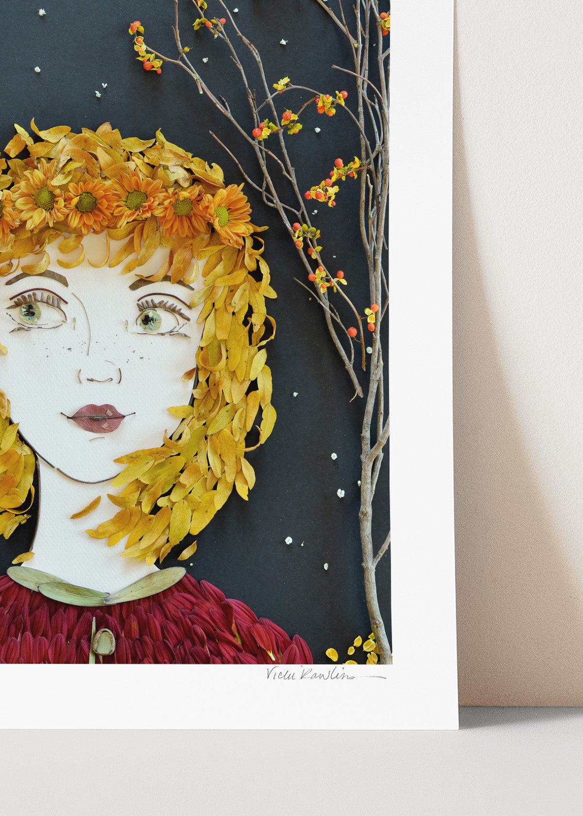 Co-owner Vicki creates stunning yet fleeting works of art made of 100% mother nature. Once her original is photographed, it’s recycled back into the earth. The originals are temporary, but our prints last forever.