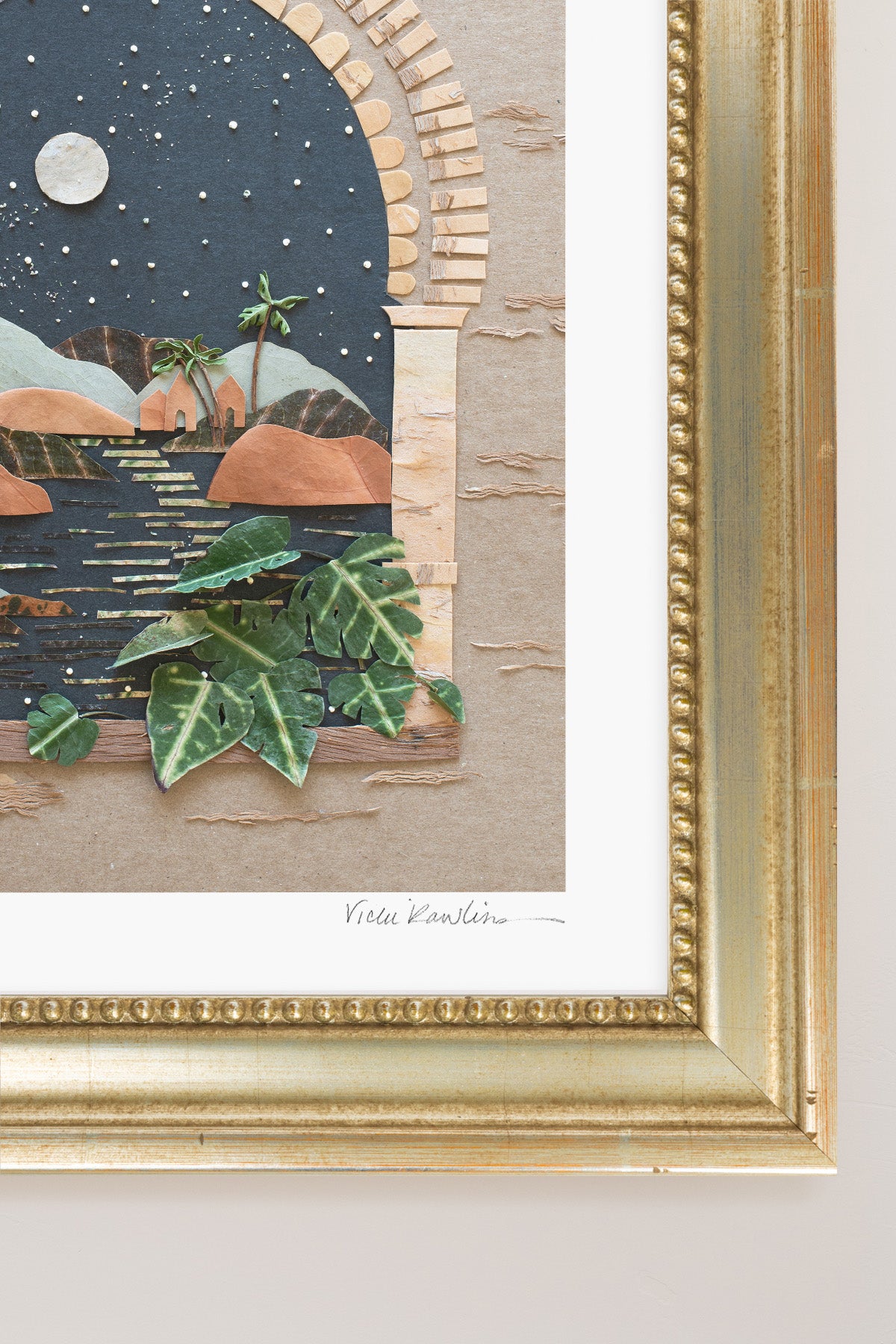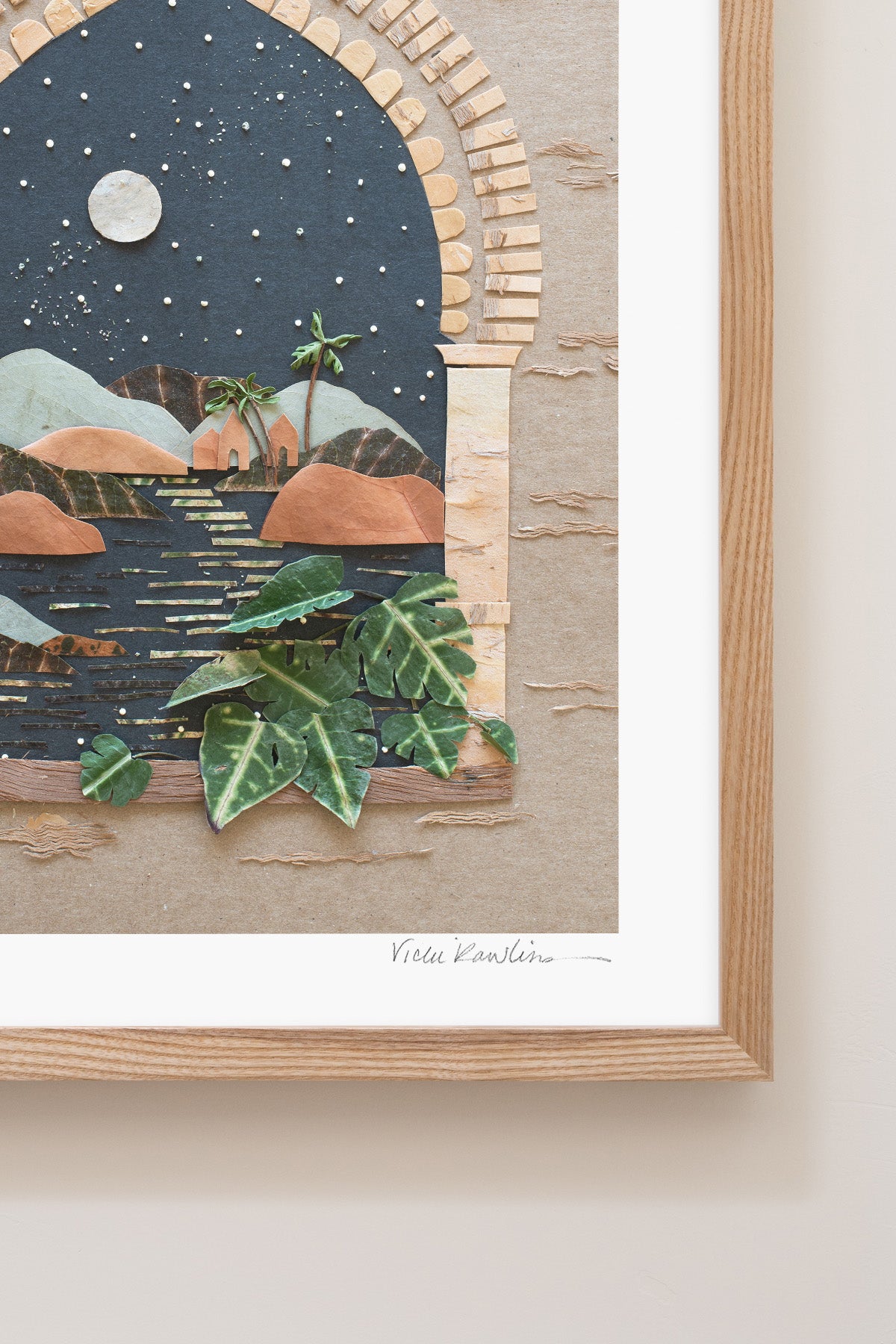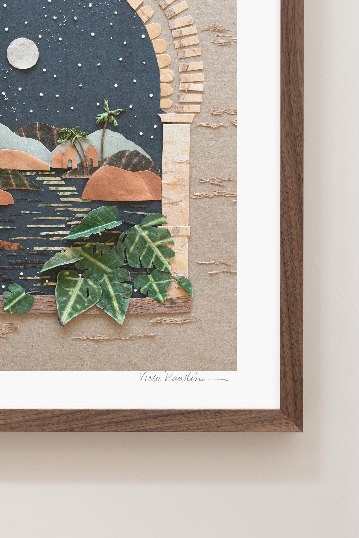 Our prints are printed on professional quality smooth matte fine art paper that is acid-free, pH-neutral and 100% cotton. Find out more about our prints here. Our frames are made of the highest quality genuine wood mouldings (no plastic) that are handcrafted and hand-joined to fit your print. Find our more about our frames here.