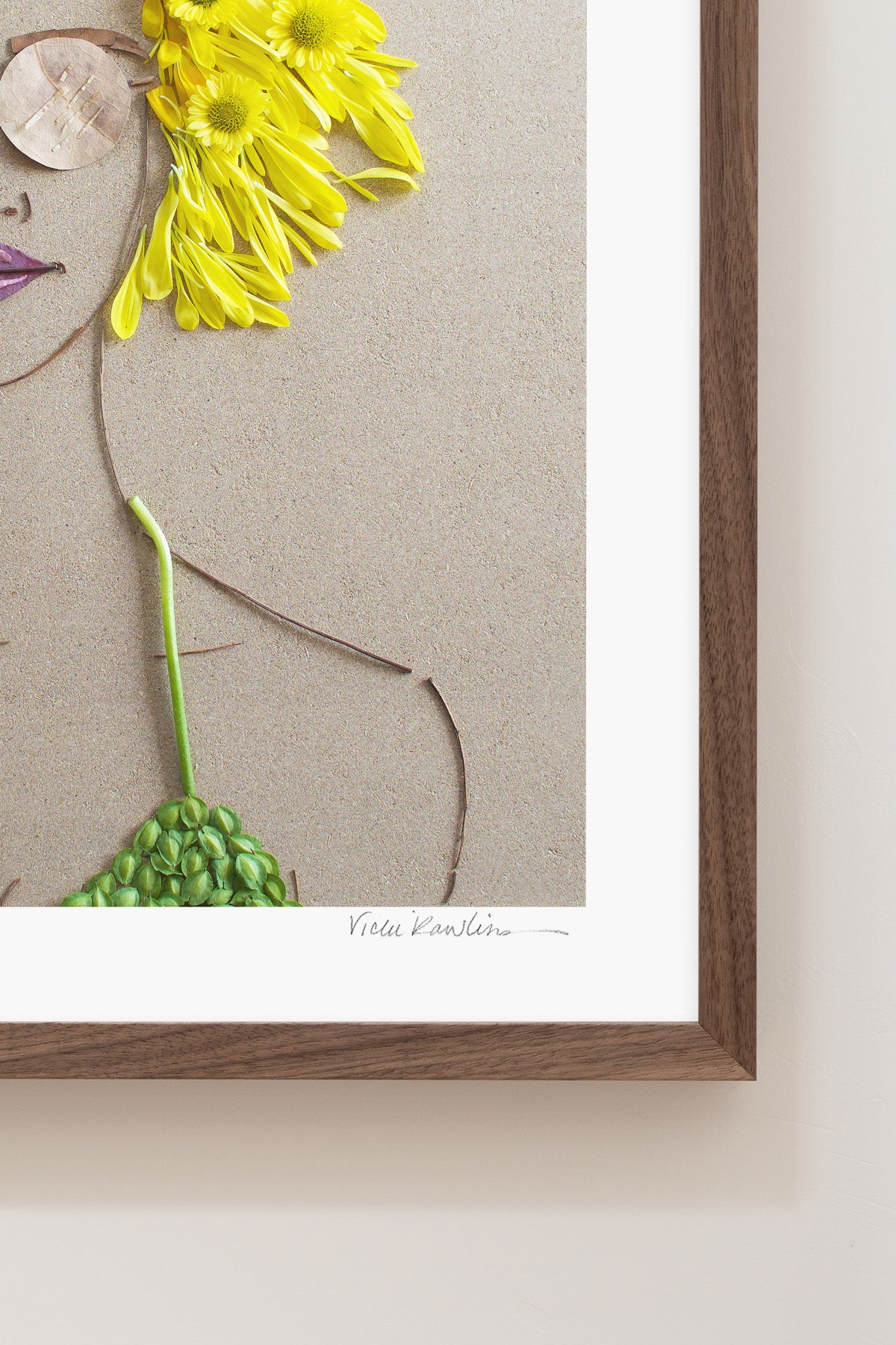 Co-owner Vicki creates stunning yet fleeting works of art made of 100% mother nature. Once her original is photographed, it’s recycled back into the earth. The originals are temporary, but our prints last forever.