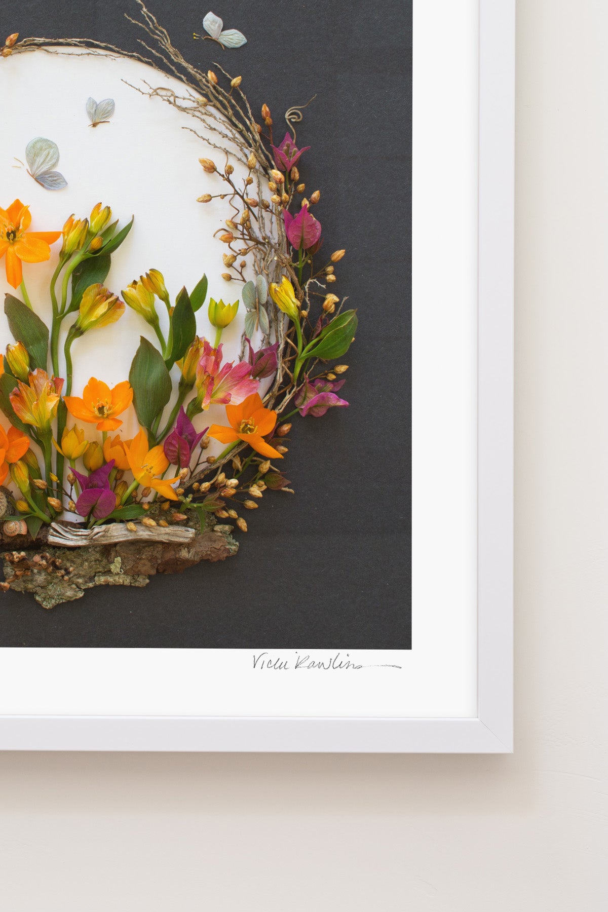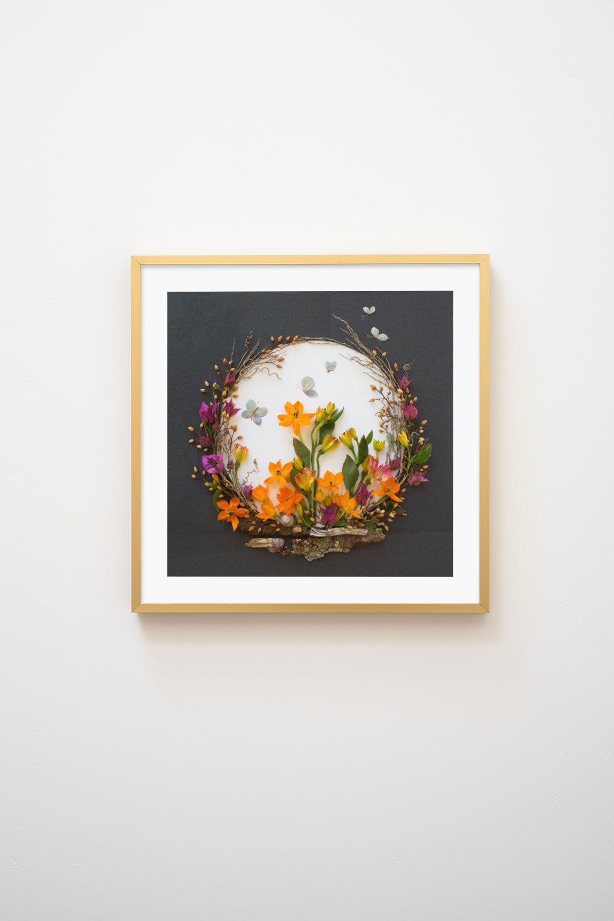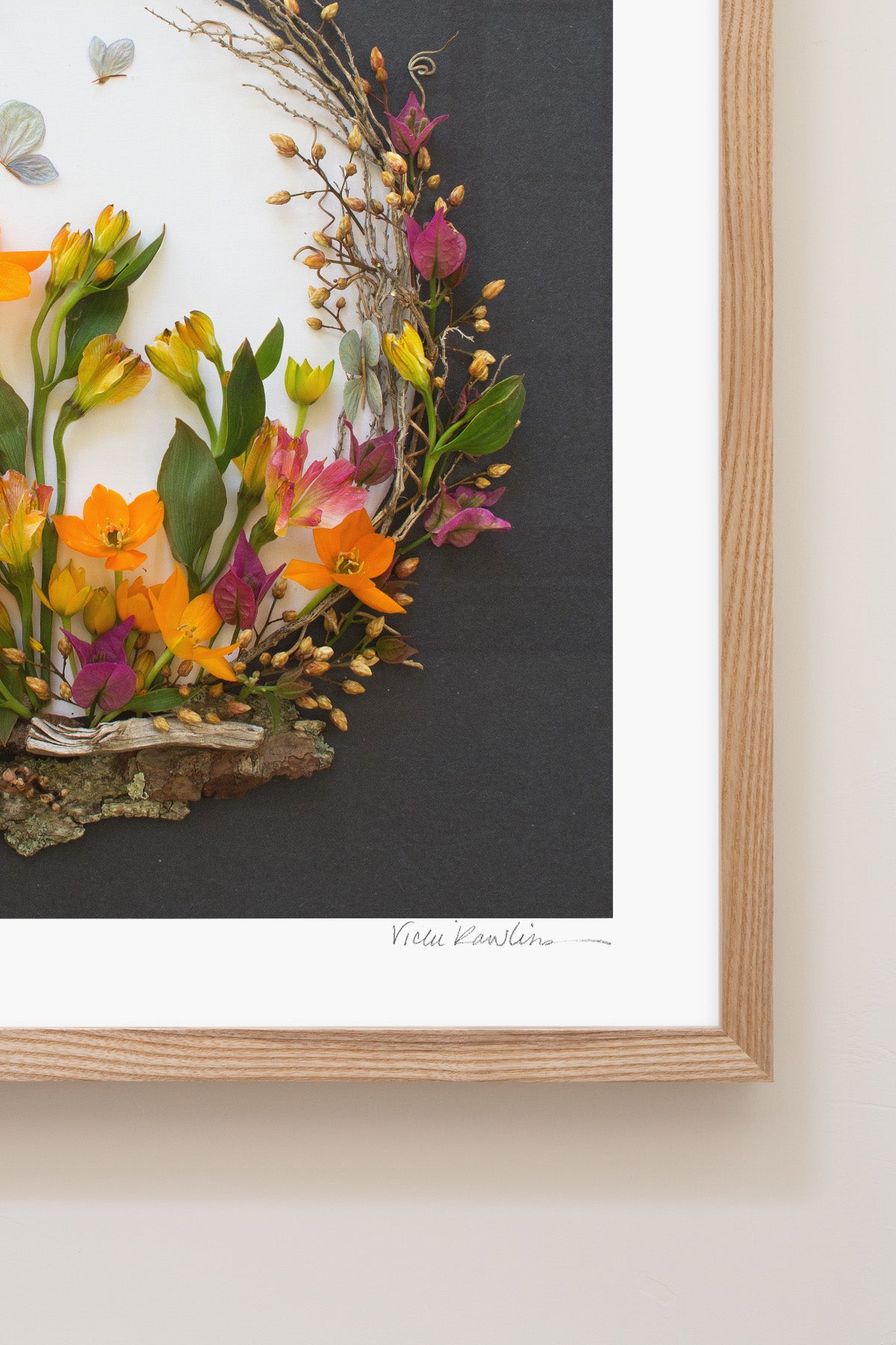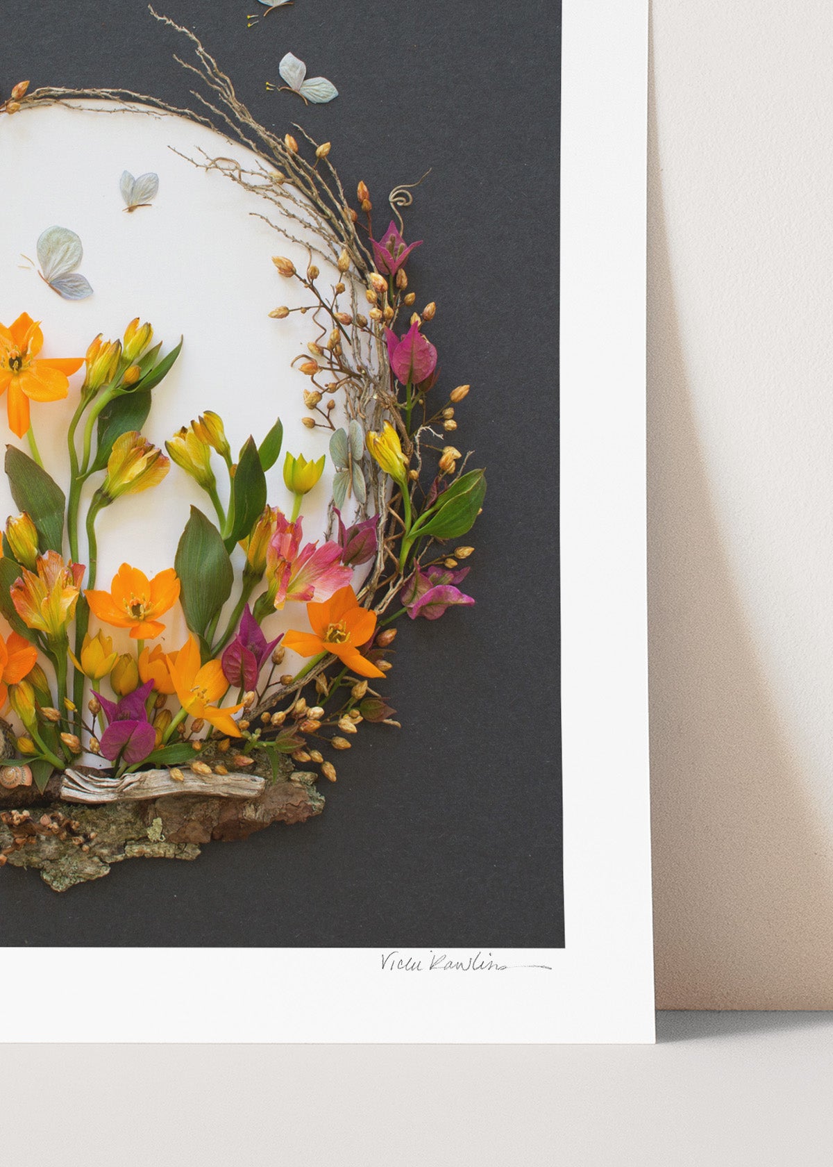 Co-owner Vicki creates stunning yet fleeting works of art made of 100% mother nature. Once her original is photographed, it’s recycled back into the earth. The originals are temporary, but our prints last forever.