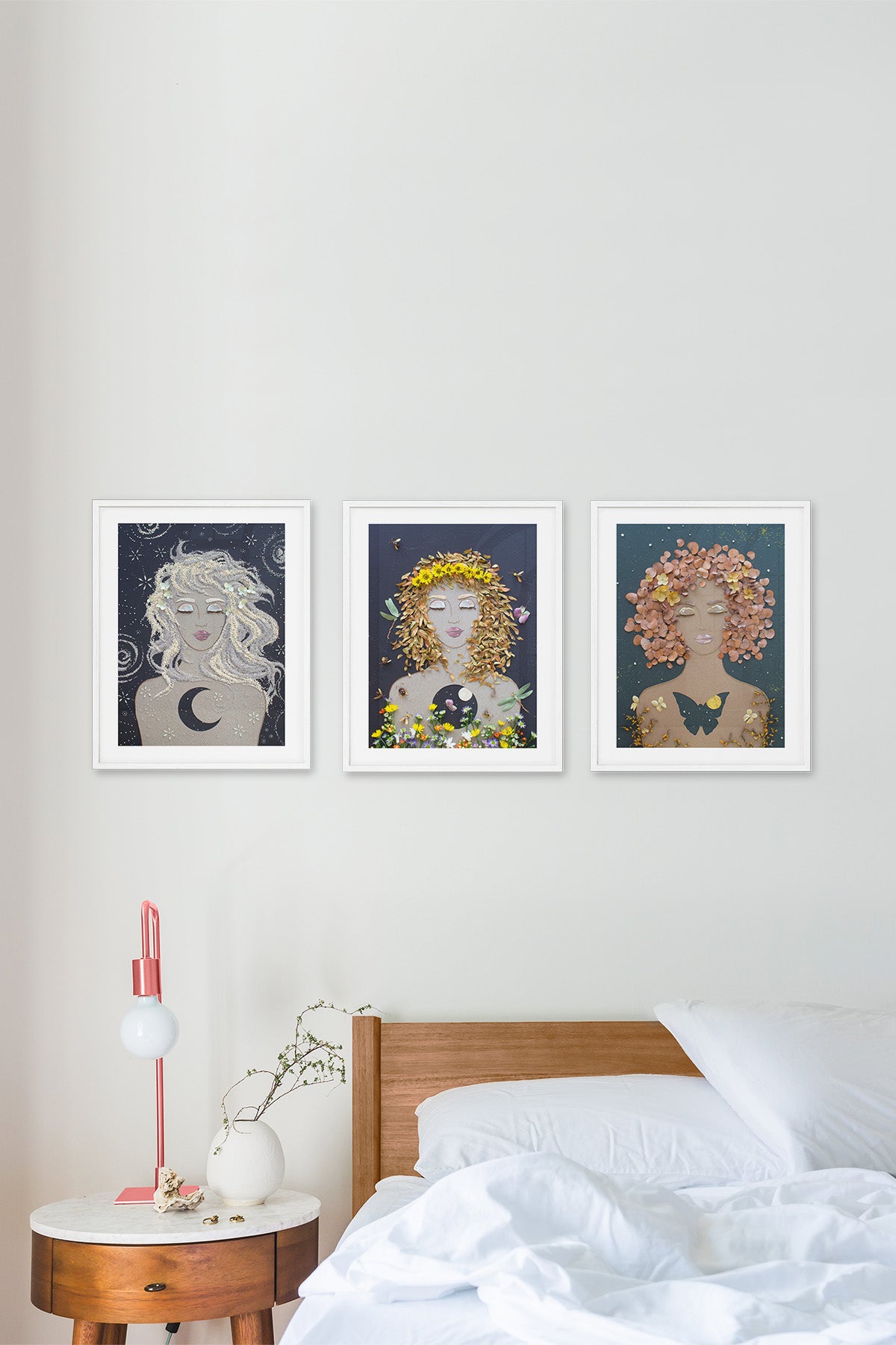 This set of prints is unframed. To order these prints framed, add each print to your cart individually and choose a frame option before doing so. We recommend the Gallery White or Modern Metal Gold mouldings for this set! Please note, framed prints are not eligible for the same discounts.