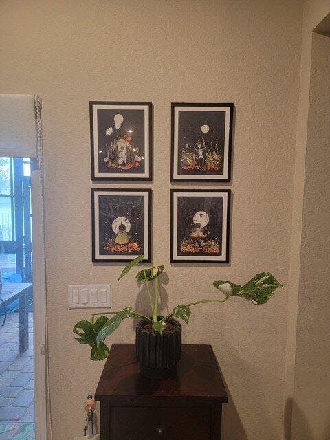 Your framed piece is finished with a backing and sturdy wire hanger. All that’s left for you to do is choose the perfect spot!