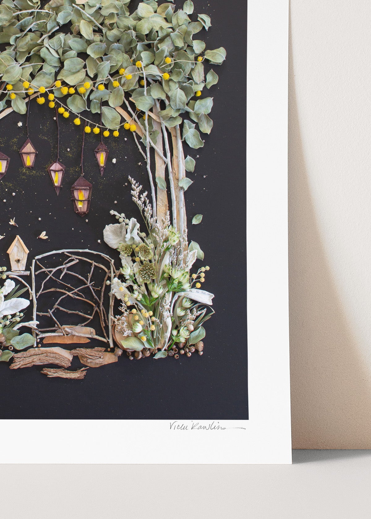 Co-owner Vicki creates stunning yet fleeting works of art made of 100% mother nature. Once her original is photographed, it’s recycled back into the earth. The originals are temporary, but our prints last forever.