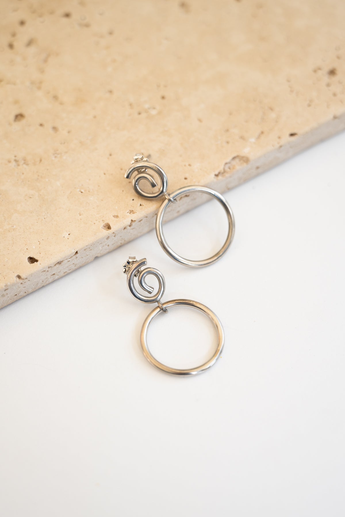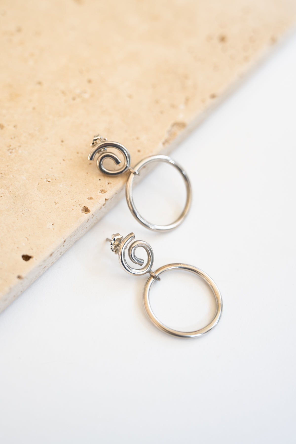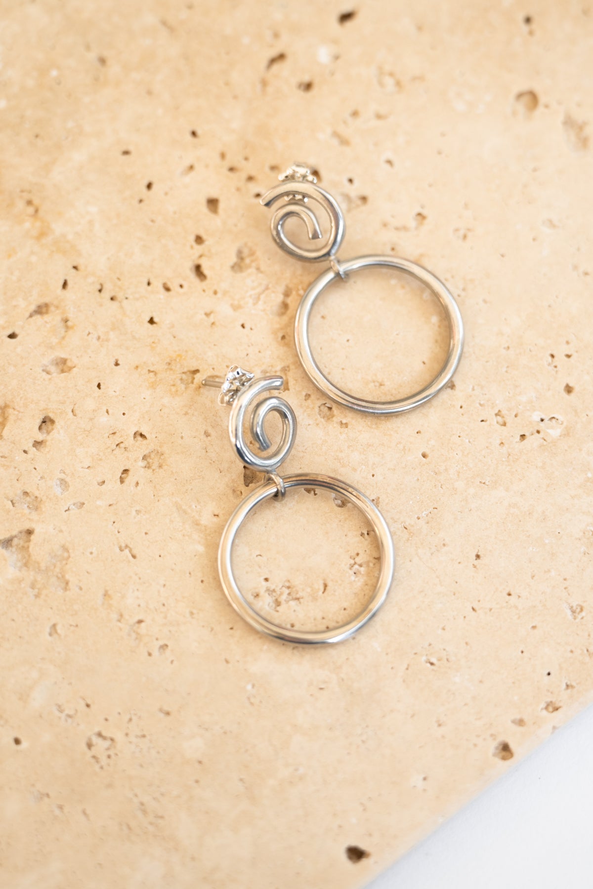 For the silver lovers, this earring is a riff on a classic knocker-style earring, but with a spiral!