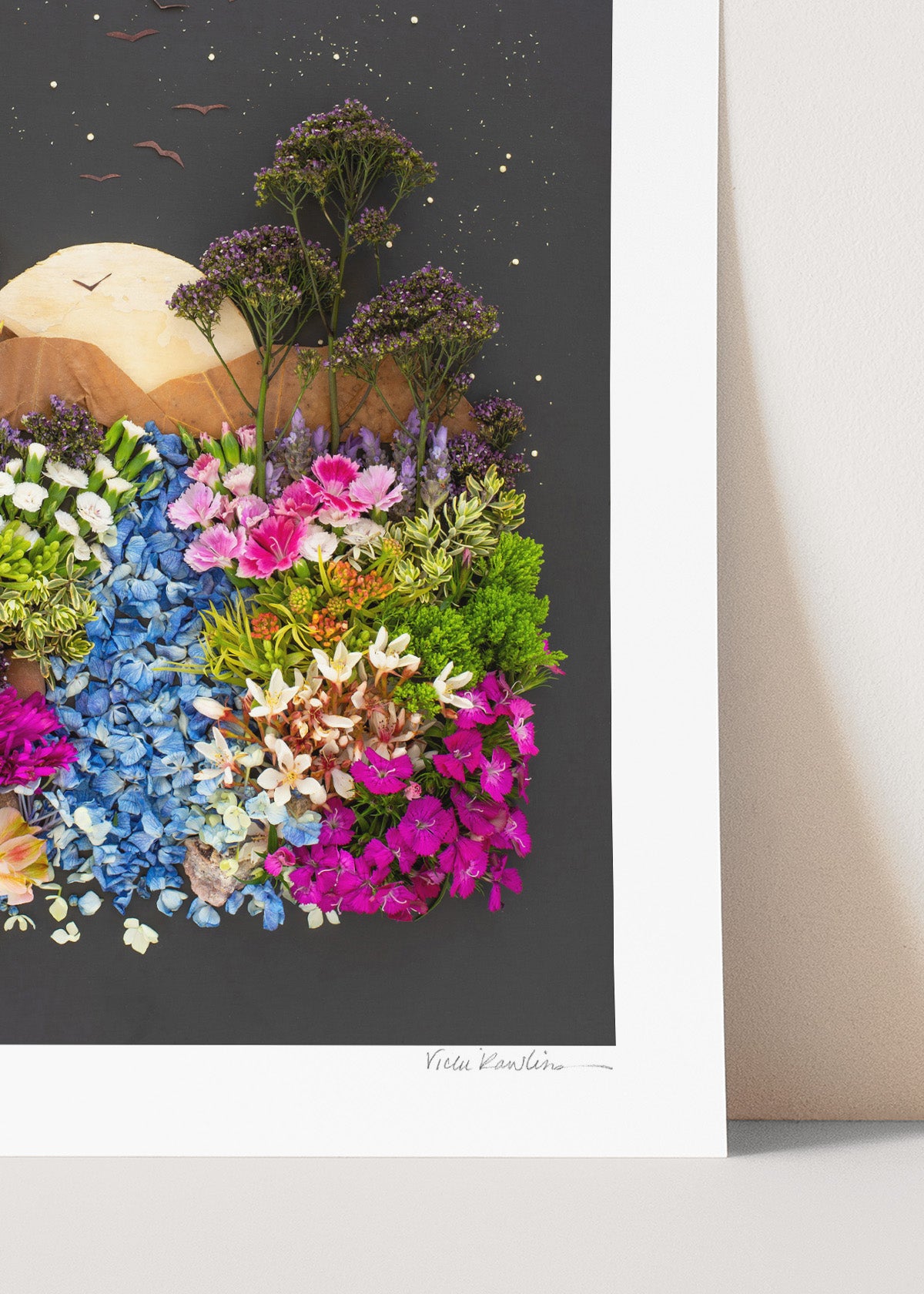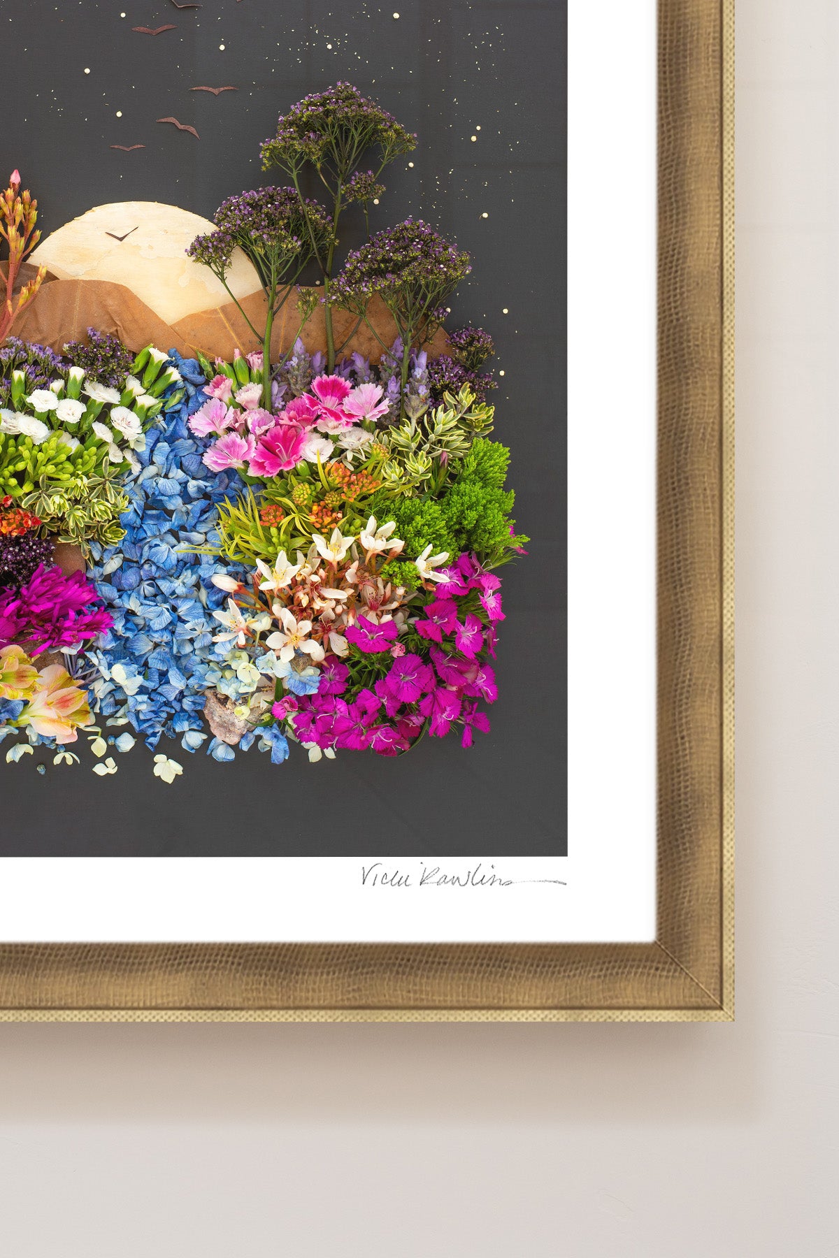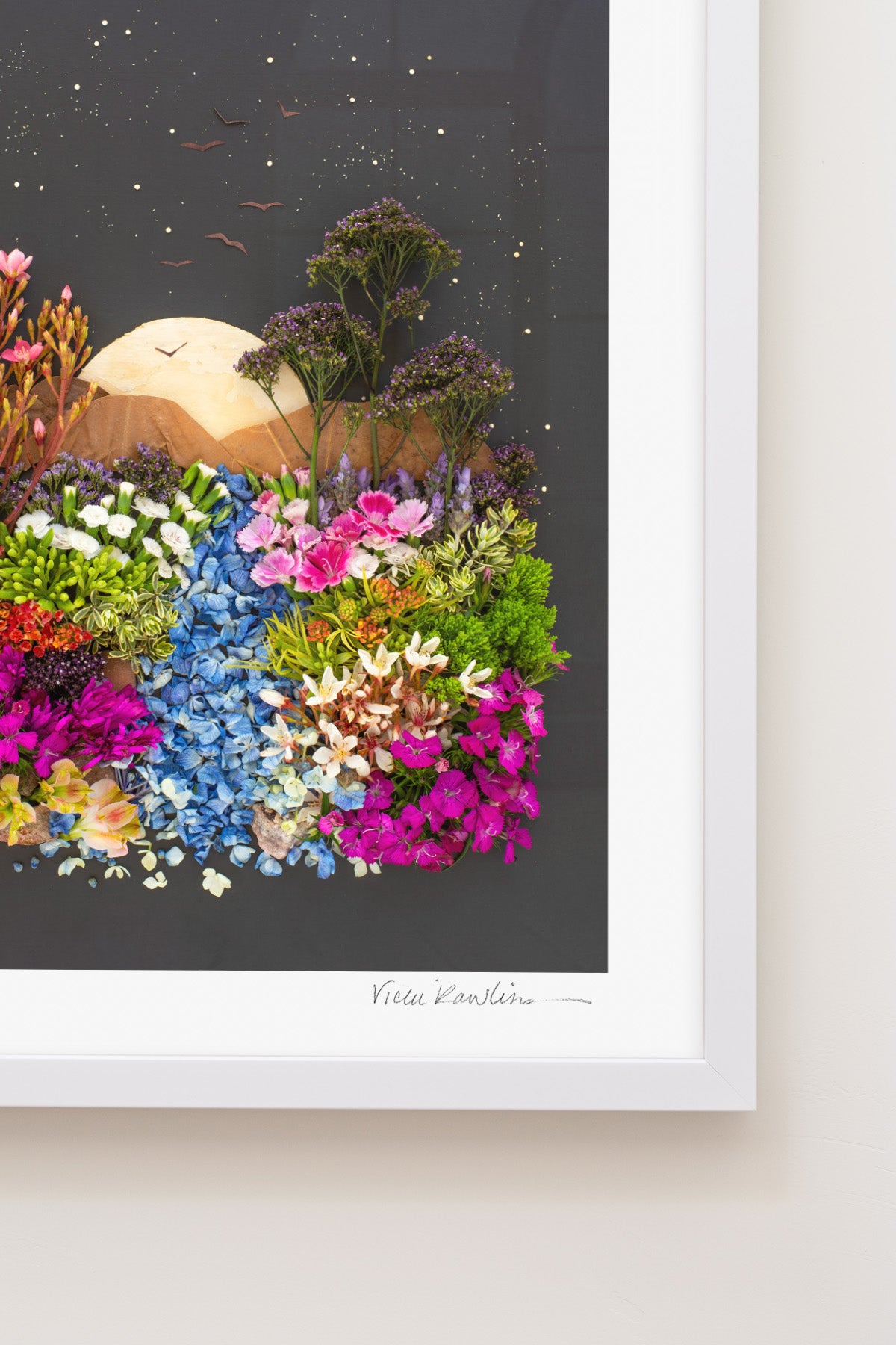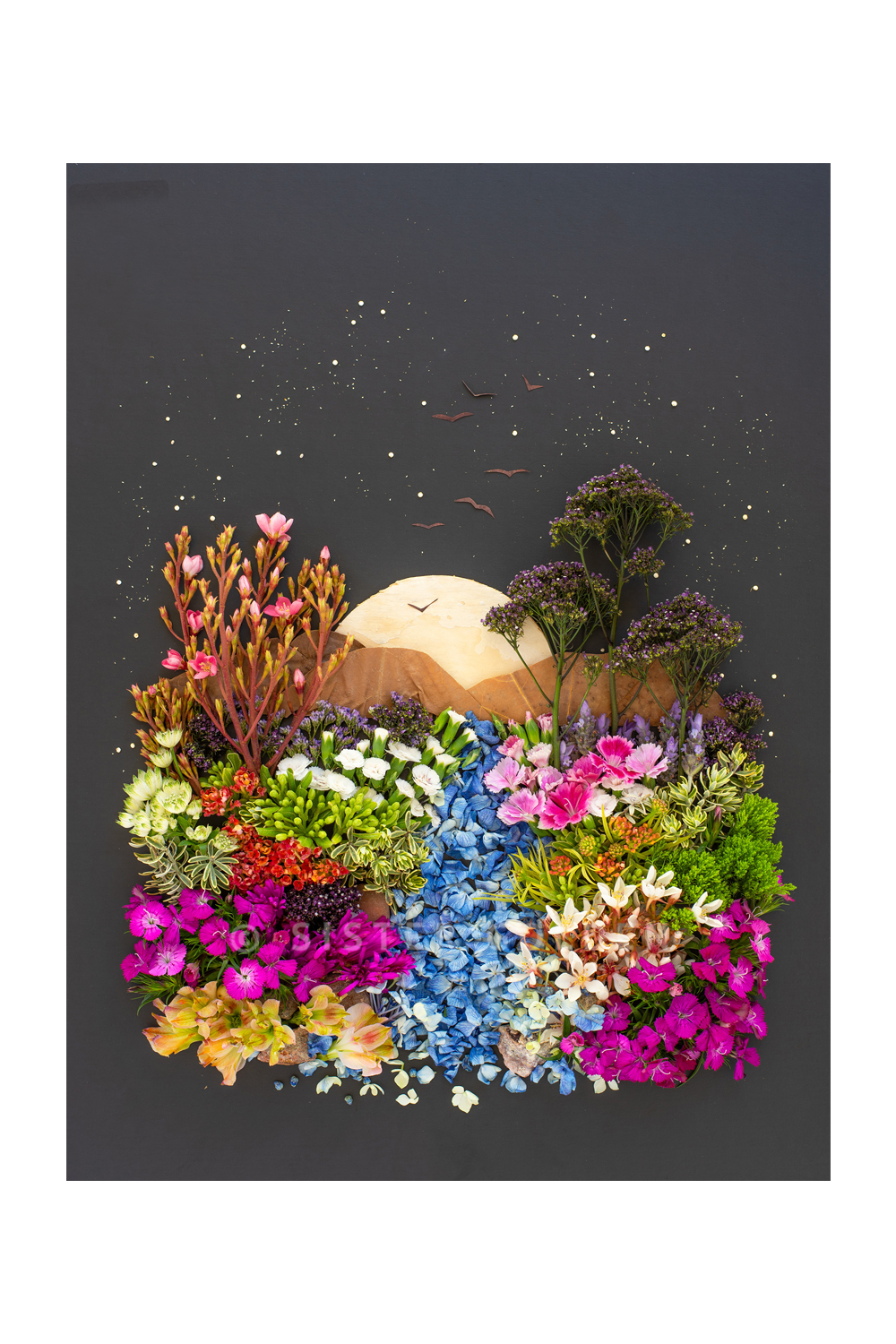 Co-owner Vicki creates stunning yet fleeting works of art made of 100% mother nature. Once her original is photographed, it’s recycled back into the earth. The originals are temporary, but our prints last forever.