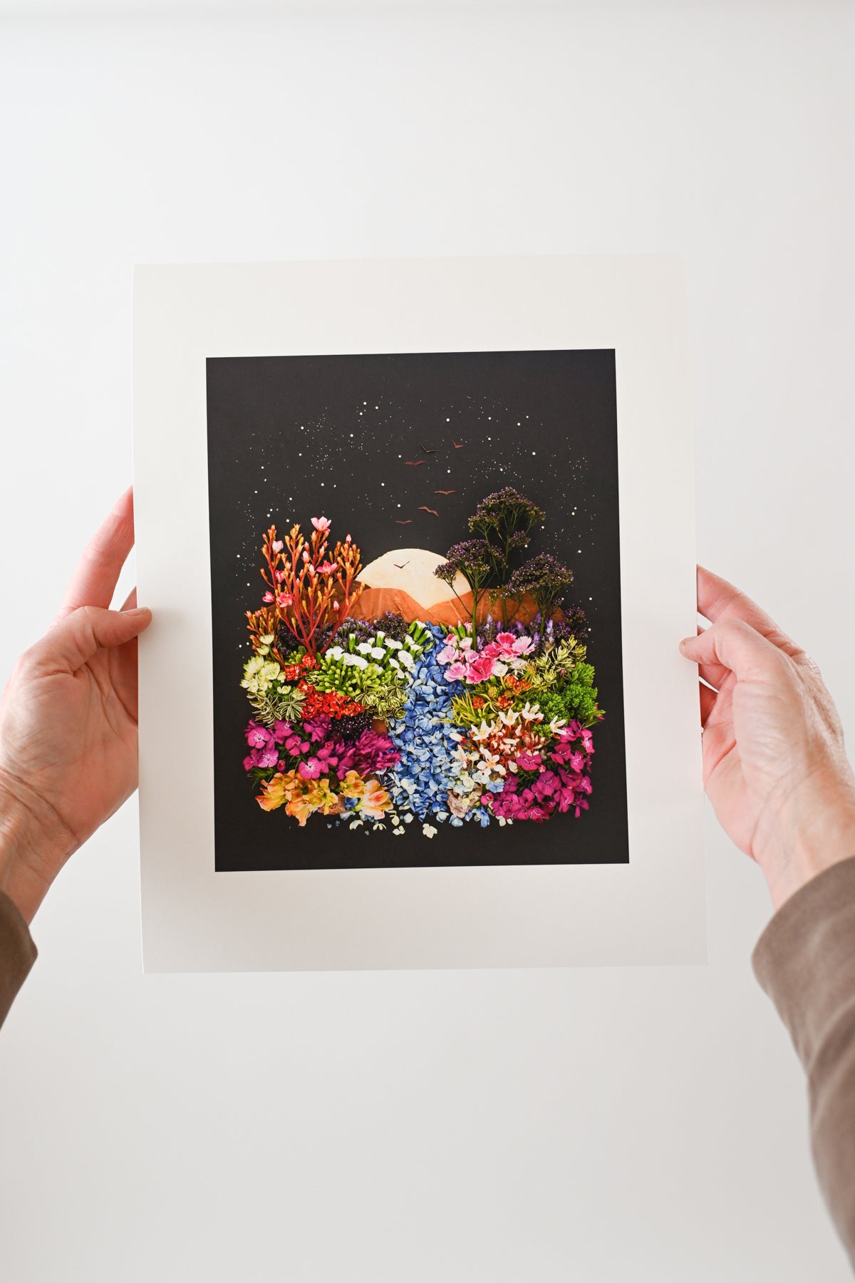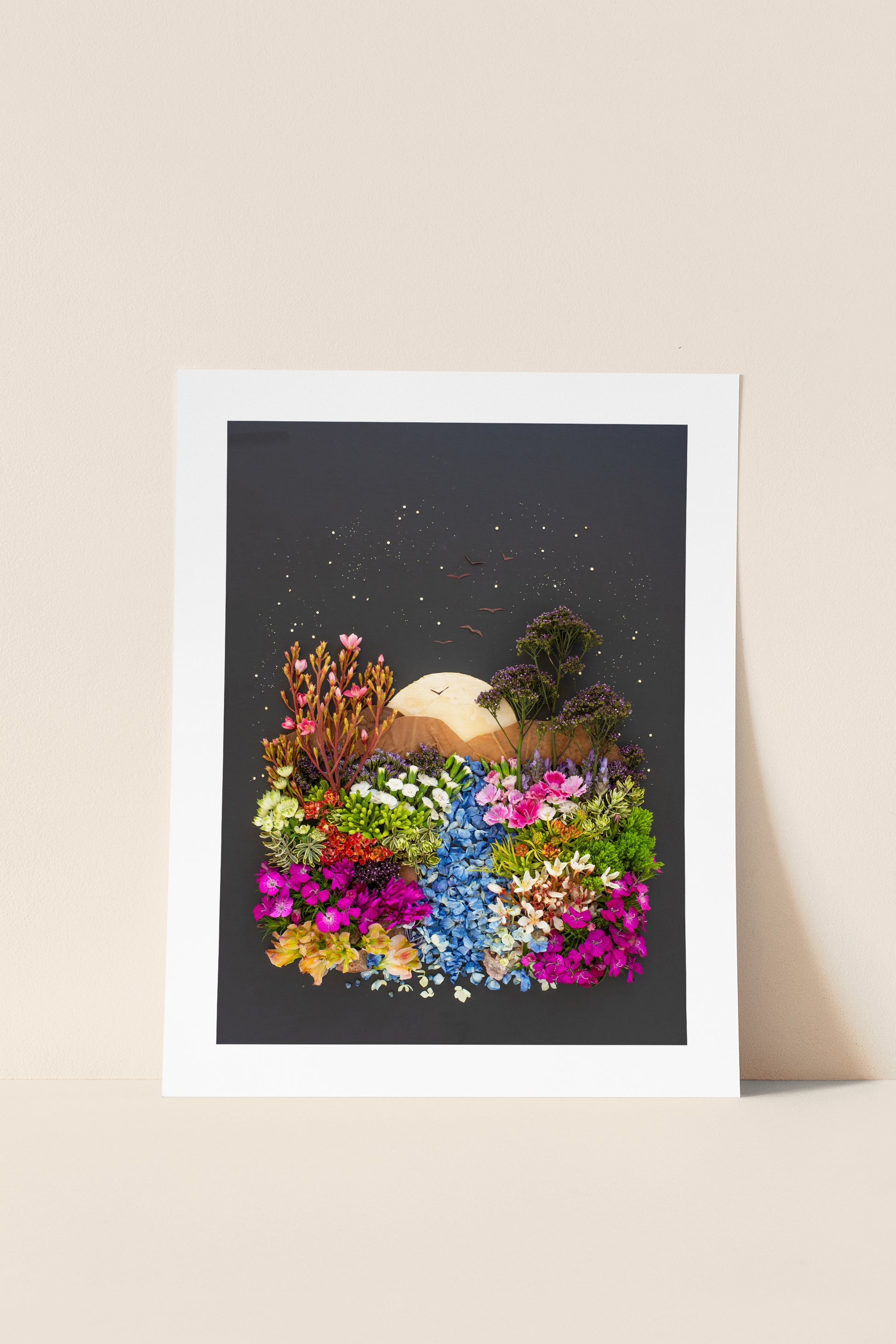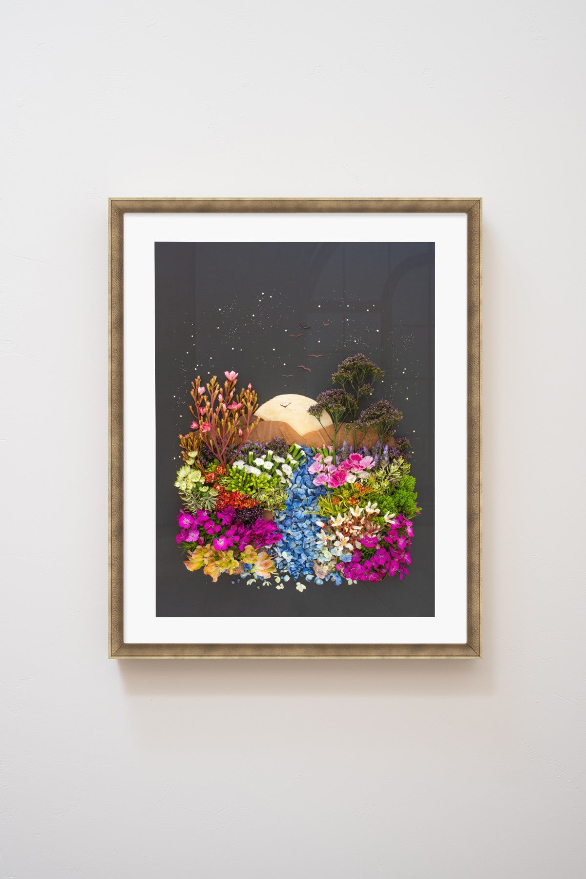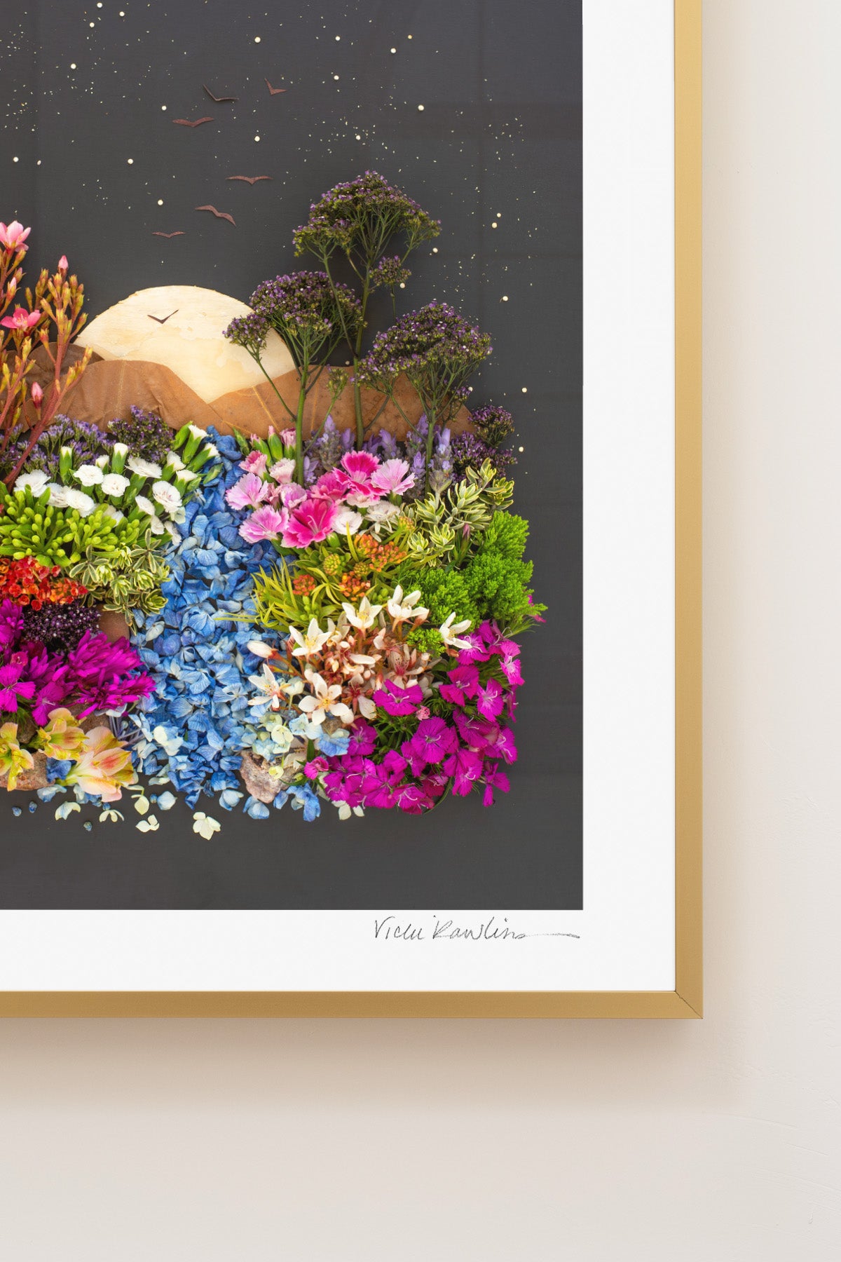 Co-owner Vicki creates stunning yet fleeting works of art made of 100% mother nature. Once her original is photographed, it’s recycled back into the earth. The originals are temporary, but our prints last forever.