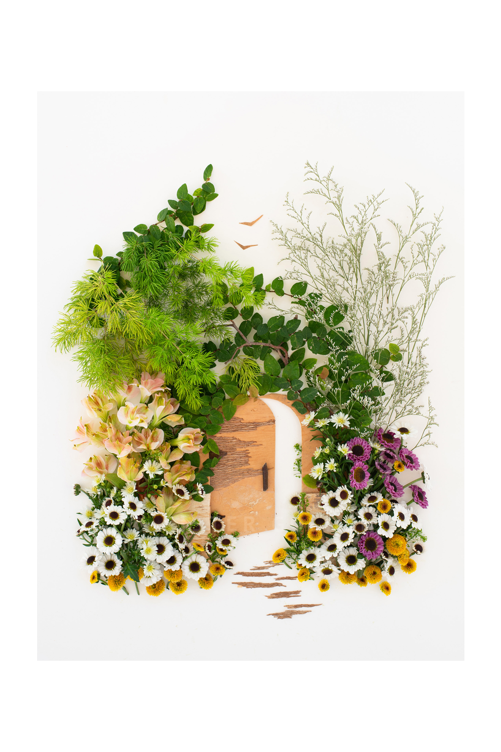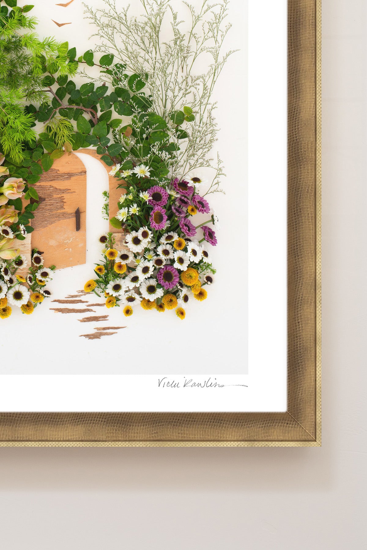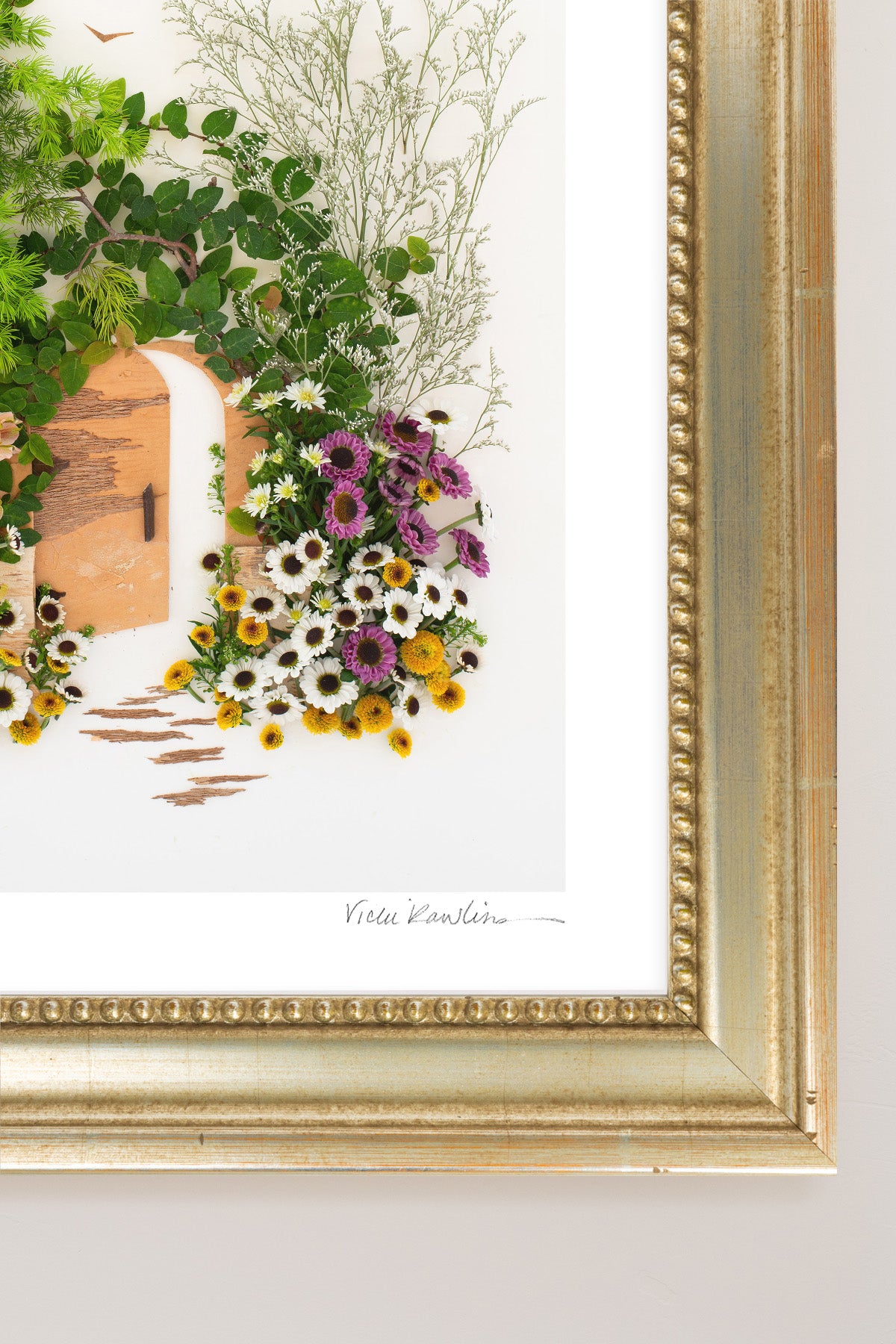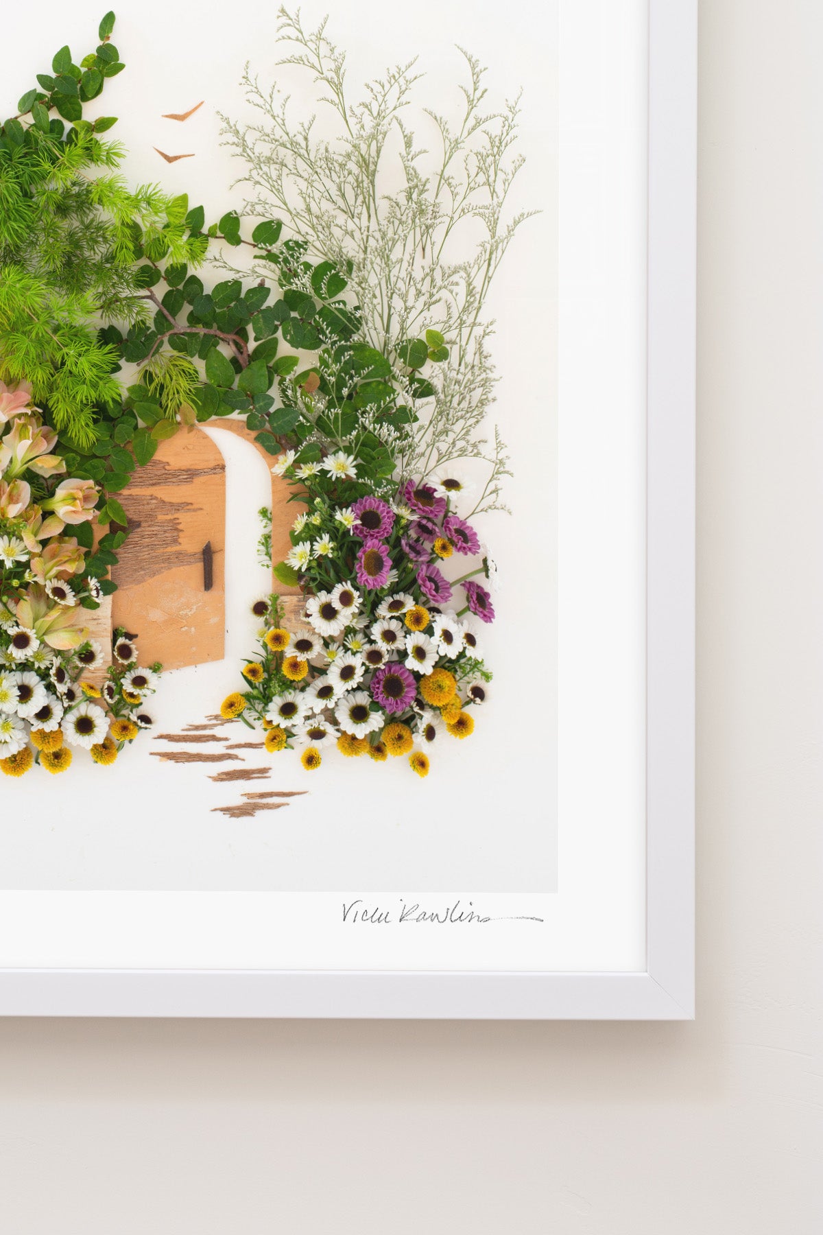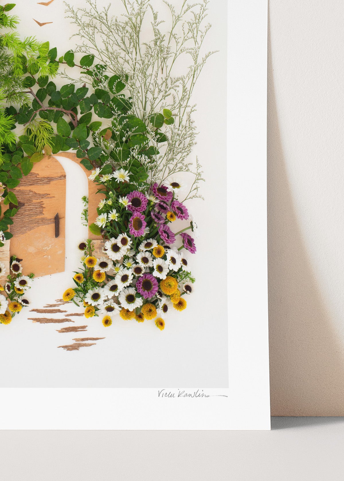 Co-owner Vicki creates stunning yet fleeting works of art made of 100% mother nature. Once her original is photographed, it’s recycled back into the earth. The originals are temporary, but our prints last forever.