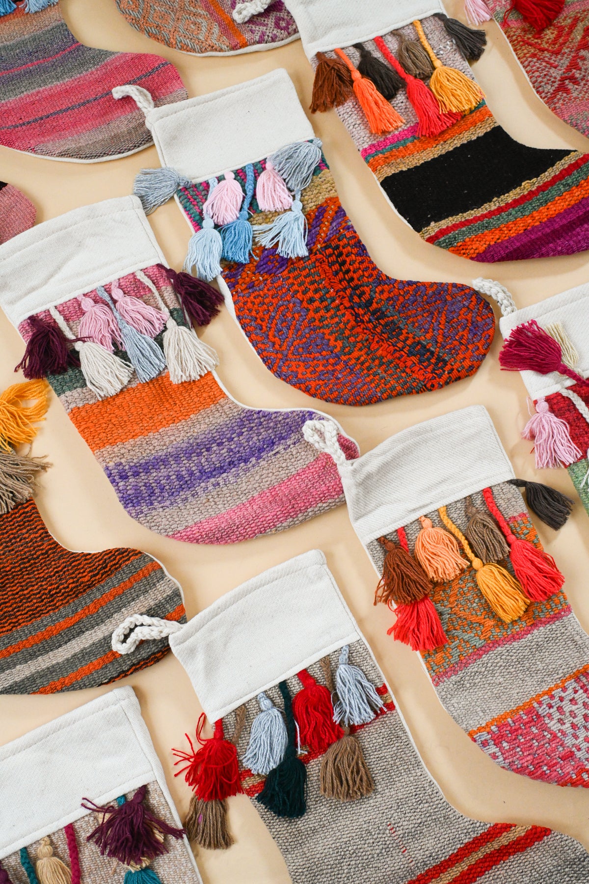 Made from handwoven Peruvian frazadas (blankets), these stockings are 100% wool and completely one-of-a-kind!