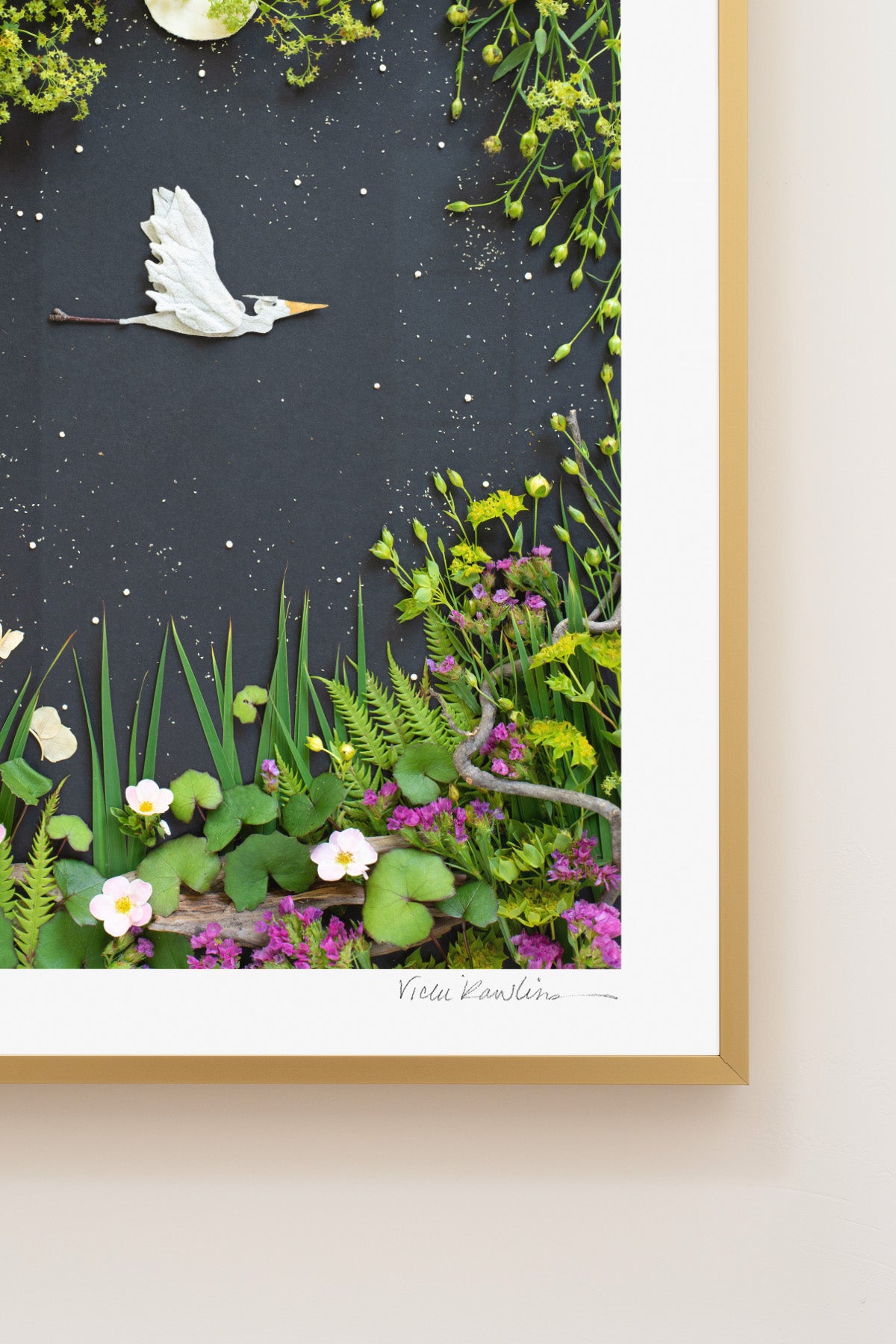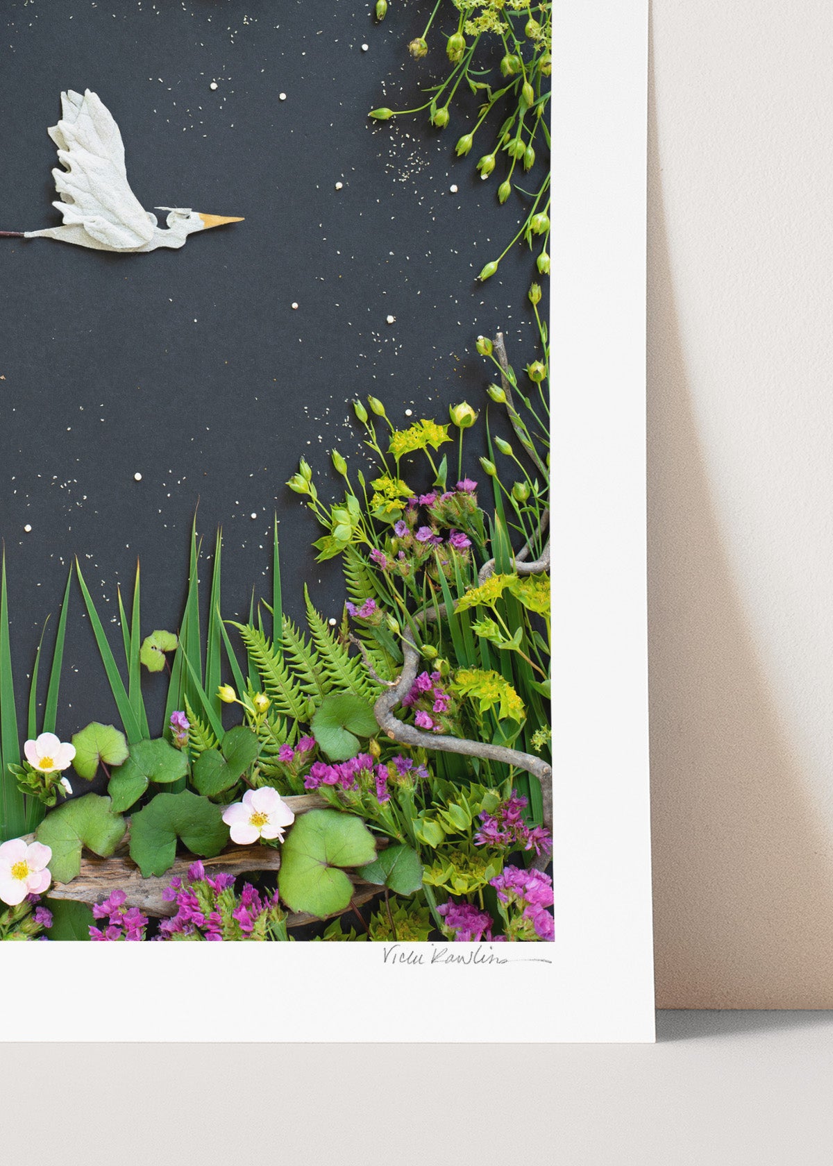 Co-owner Vicki creates stunning yet fleeting works of art made of 100% mother nature. Once her original is photographed, it’s recycled back into the earth. The originals are temporary, but our prints last forever.